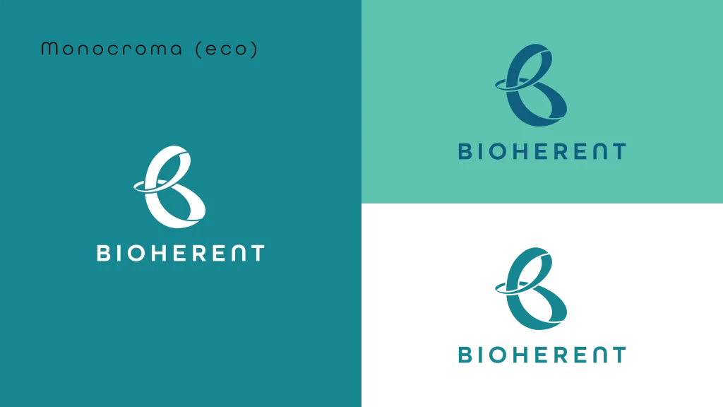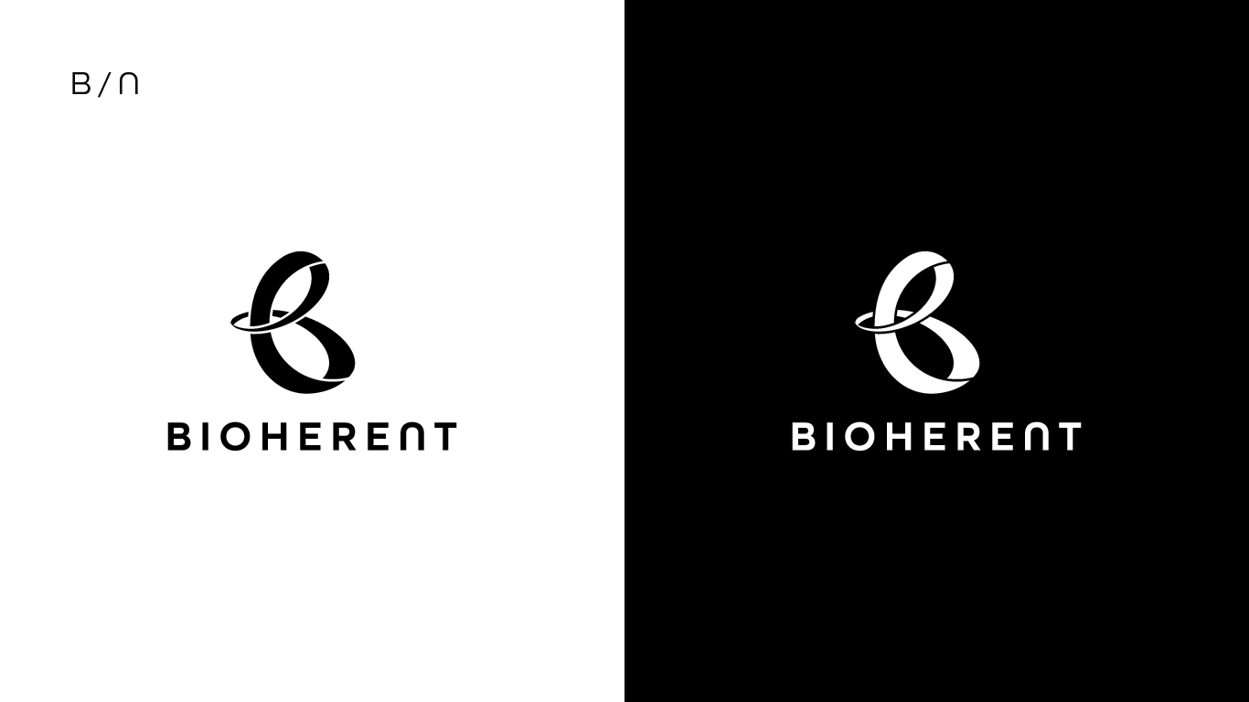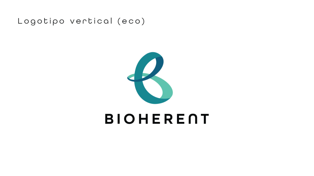 Este logotipo resuelve algo que el anterior no conseguía: sintetizar en una única forma una idea compleja sin necesidad de explicarla. La primera lectura es inmediata y funcional, porque se percibe claramente una “B”, conectando de forma directa con el naming Bioherent. Pero lo relevante no es esa obviedad, sino que la forma no se agota ahí. Al observarla con más detenimiento, aparece una segunda capa conceptual: la referencia a la cinta de Möbius, que introduce la idea de continuidad, flujo y sistema cerrado, alineándose con el pensamiento ingenieril del cliente y con la naturaleza de una tecnología basada en señales coherentes.