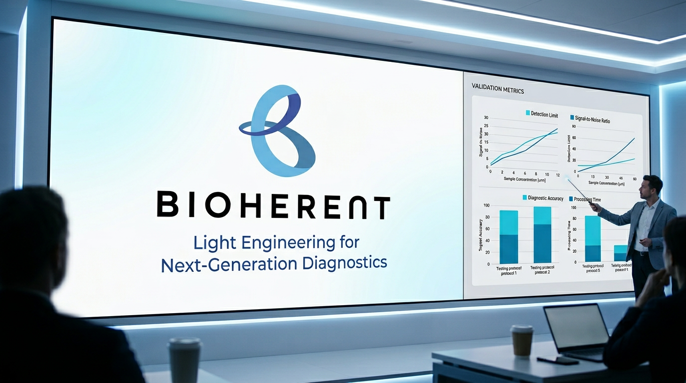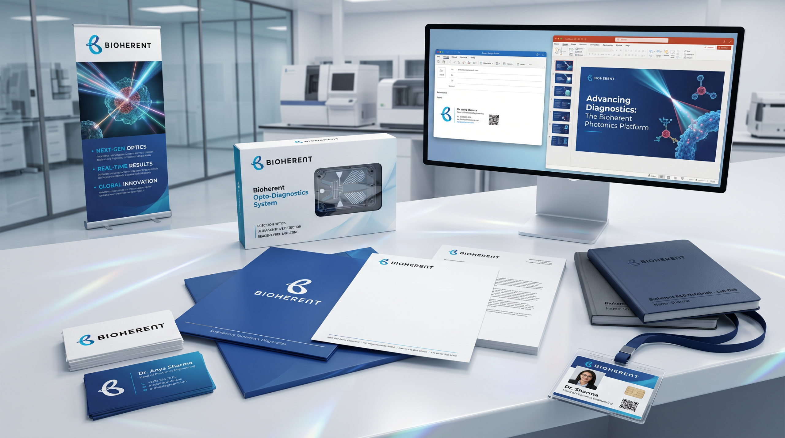 El reto del logotipo de Bioherent no era menor: debía traducir una tecnología compleja basada en coherent detection, representar el universo de la fotónica y la biotecnología aplicada a la salud, y hacerlo además con una estética profesional, tecnológica y futurista. Es decir, no se trataba de diseñar un símbolo atractivo, sino de transformar una lógica científica invisible en una percepción clara y confiable.