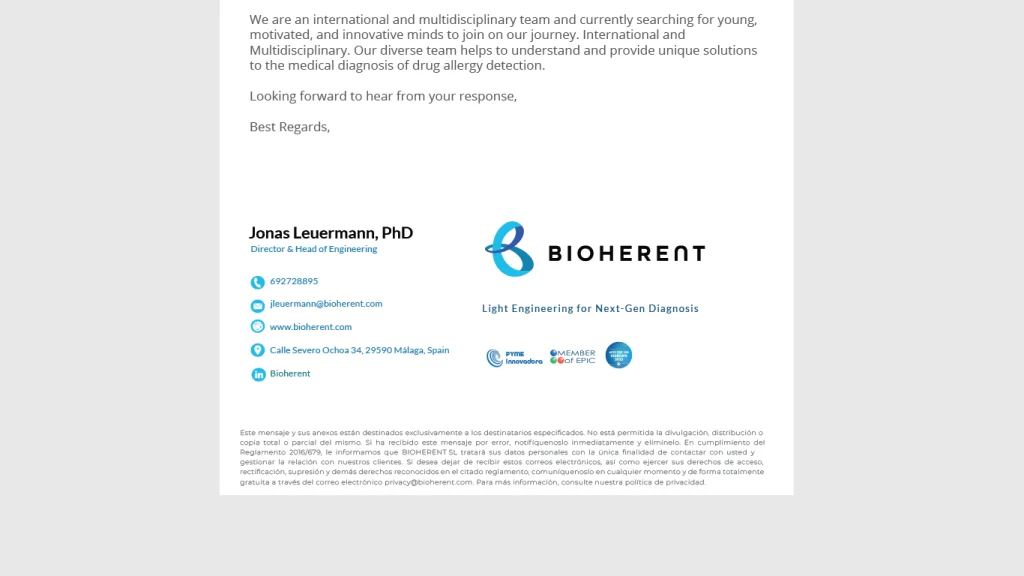 Desde dentro, todo estaba claro. Su propuesta se basaba en una tecnología avanzada de biosensores fotónicos aplicada al diagnóstico de alergias a medicamentos, apoyada en principios de detección coherente donde múltiples señales interactúan para reconstruir información con precisión. Era una solución sofisticada, con una base científica sólida y un potencial real en el ámbito clínico.